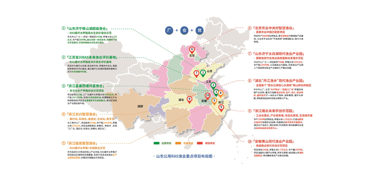 商達公用集團在RAS循環水養殖領域依托專業的運營公司——山東公用設施漁業有限公司,采用Sound5.0未來漁工廠和“廠+倉+優”產業布局。十四五期間規劃投資建設運營高標準工廠化養殖水體100萬立方,預計產能8萬噸/年。目前已在運營和規劃的項目包括濟寧微山湖超級漁倉項目、江蘇宜興評價基地、浙江嘉善西塘共富漁倉、浙江長興智慧漁谷、浙江臨安智慧漁谷等多個EOD和設施漁業項目。